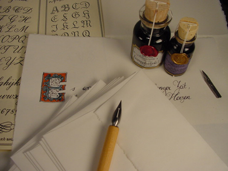 | Sowohl für Profis wie auch für den Anfänger bietet Abraxas eine grosse Auswahl an Schreib- und Kalligraphiesets an. Aber auch der Liebhaber des schönen Schreibens findet hier ein vielfältiges Angebot an fertig konfektionierten Schreibutensilien. Suchen Sie ein Set mit Gänsekiel und Tinte, ein nostalgisches Tintenfässchen mit versiegeltem Korken und dazupassender Glasfeder, ein wunderschönes Schreibset mit vergoldeter Sonnenfeder und Sonnentinte, eine versiegelte Papeterie mit feinsten, handgeschöpften Briefbogen und dazupassenden Briefumschlägen, ein Kalligraphieset mit Federhalter, Tinte und verschiedenen Schreibfedern sowie einer Anleitung ? Oder darf es eher ein handgefertigtes Schreibbrett aus Tannenholz mit allen dazugehörigen Schreibutensilien im nostalgischen Look sein ? Lassen Sie sich von der wunderbaren Auswahl inspirieren. Sicher finden Sie das Set, welches Ihren Bedürfnissen und Anforderungen am besten entspricht. |